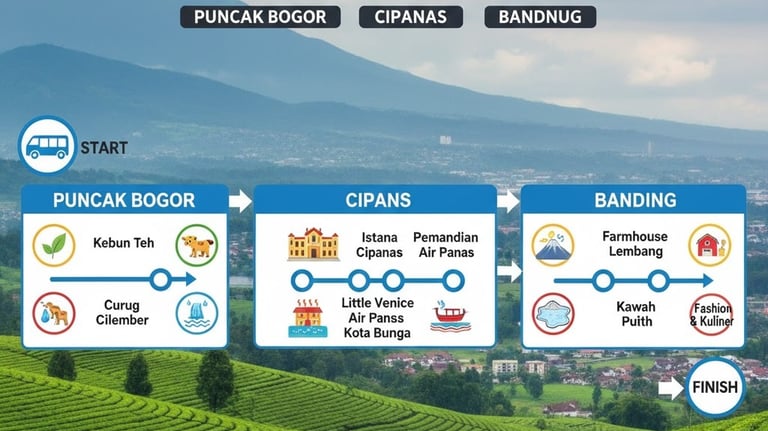 بونكاك بوجور، سوكابومى، باندونج، جاكرتا، بالي، وغيرها من المعالم السياحية